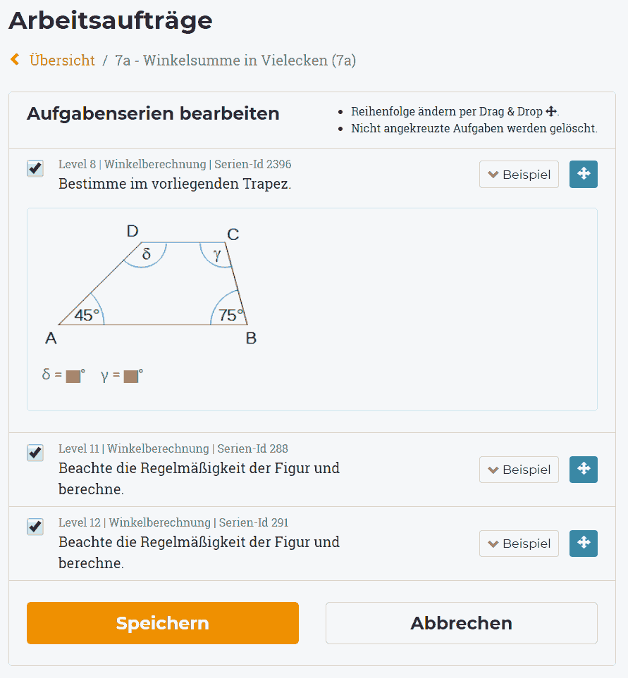 - Wählen Sie als Lehrer beliebige Aufgaben aus unserem Aufgabenbereich und erstellen Sie daraus Arbeitsaufträge.