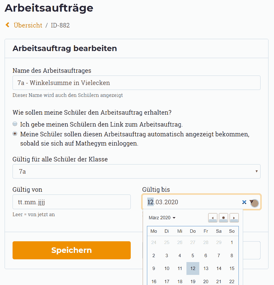 - Legen Sie fest, welche Schüler/Klassen den Arbeitsauftrag erhalten sollen.