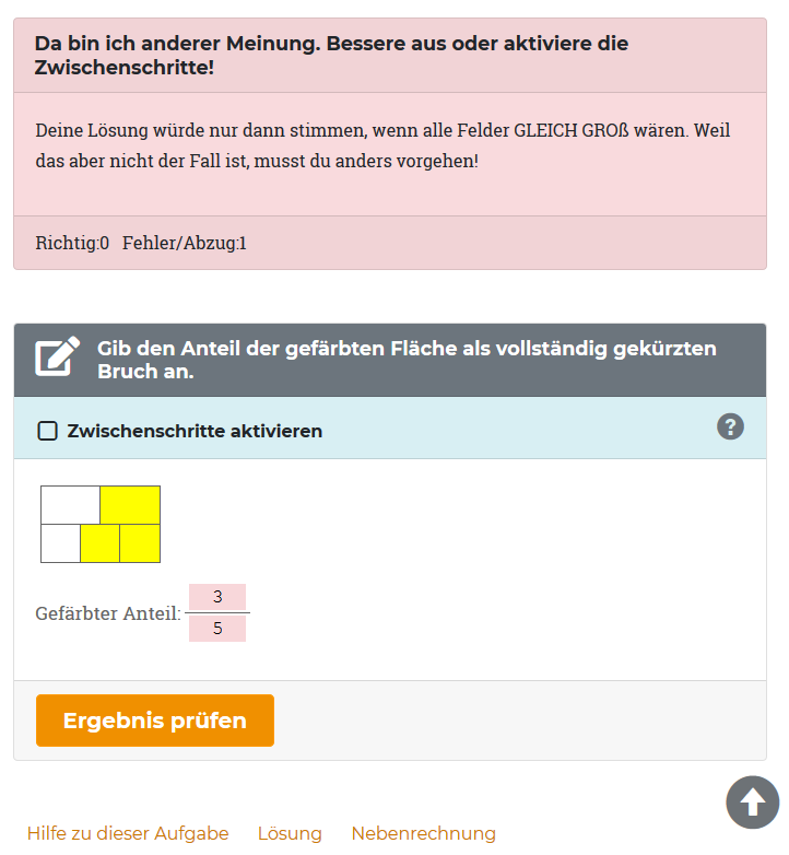 - Durch die Wiederholungsmöglichkeit (auf jeder Stufe bis zu 10 ähnliche Aufgaben) können auch leistungsschwache SchülerInnen aus ihren Fehlern lernen.
