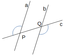 Werden zwei parallele Geraden a und b von einer dritten Gerade c geschnitten, so ergeben sich zwei Schnittpunkte P und Q. Diese sind jeweils Scheitel von vier Winkeln. Ein Winkel mit Scheitel P und ein Winkel mit Scheitel Q heißen: