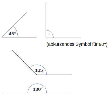 Wie kann man sich die Winkel von 45°, 90°, 135° und 180° bildlich vorstellen?