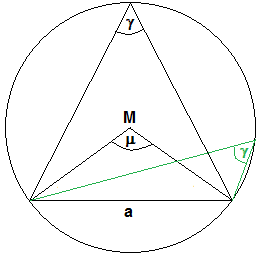 • Vom Kreismittelpunkt aus erscheint die Sehne dagegen unter dem Winkel µ = 2γ, d.h. der Mittelpunktswinkel ist immer doppelt so groß wie der Umfangswinkel.