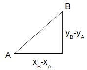 Die Entfernung zweier Punkte A und B erhält man, indem man ein rechtwinkliges Dreieck mit AB als Hypotenuse und den Kathetenlängen xB − xA und yB − yA (gemeint sind die x- und y-Koordinaten von A und B) betrachtet. Nach dem Satz des Pythagoras muss man die Quadrate beider Differenzen summieren und aus dem Ergebnis die Wurzel ziehen, um die Entfernung zwischen A und B zu erhalten.