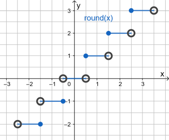 Bei den bisher behandelten Funktionstypen (ganzrational, gebrochen-rational, exponentiell, trigonometrisch) handelt es sich um stetige Funktionen. Dagegen ist z.B. die Rundungsfunktion, die jeder reellen Zahl den auf Ganze gerundeten Wert zuordnet, nicht stetig (siehe Abbildung).