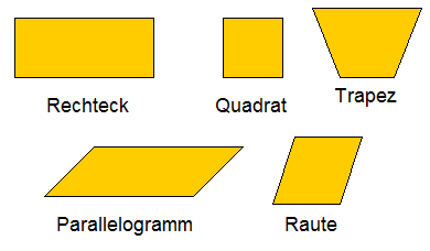 Rechteck, Quadrat, Parallelogramm, Raute und Trapez sind besondere Vierecke.